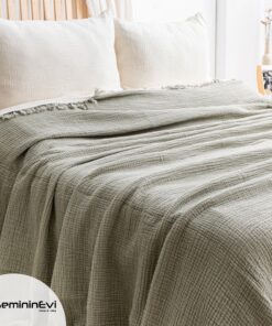 %100 Müslin pamuktan üretilmiş olup, cildinizle doğal bir uyum sağlar.