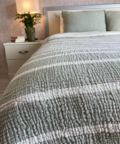 Müslin Çizgili Yatak Örtüsü Çağla Yeşili