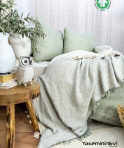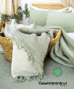 müslin yatak örtüsü çağla yeşili
