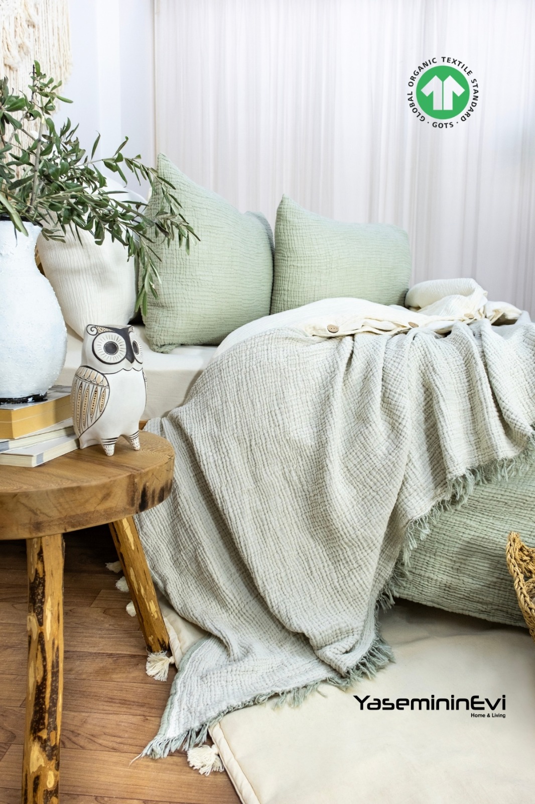 4 Katlı müslin yatak örtülerimiz çift taraflı kullanım özelliği ve çok yumuşak dokusu ile evlerimizin vazgeçilmez örtüsü olmaya devam ediyor %100 Pamuktan üretilmiştir , alerji veya kaşıntı yapmaz. Yatak odalarında yatak örtüsü ve aynı zamanda pike olarak kullanıma uygundur. Kullanım alanları: Yatak örtüsü, yazlık pike,koltuk şalı yada koltuk örtüsü olarak kullanabilirsiniz. 40°C’ye kadar makinede yıkanabilir, Dolap kuruluğunda kurutma makinesinde kurutma yapabilirsiniz. Kesinlikle beyazlatıcı kullanmayınız ve ütülemeyiniz. GOTS sertifikamız ile Denizli’den evlerinize mutluluk getiriyoruz.