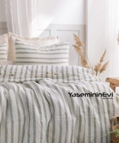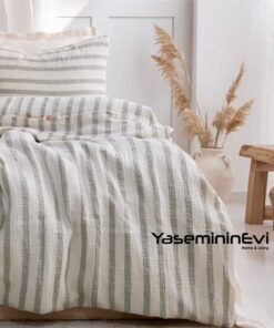 - Armürlü deseniyle şıklığı ve zarafeti yatak odanıza taşır; gri çizgili renk seçeneği ile modern ve sofistike bir görünüm sağlar.